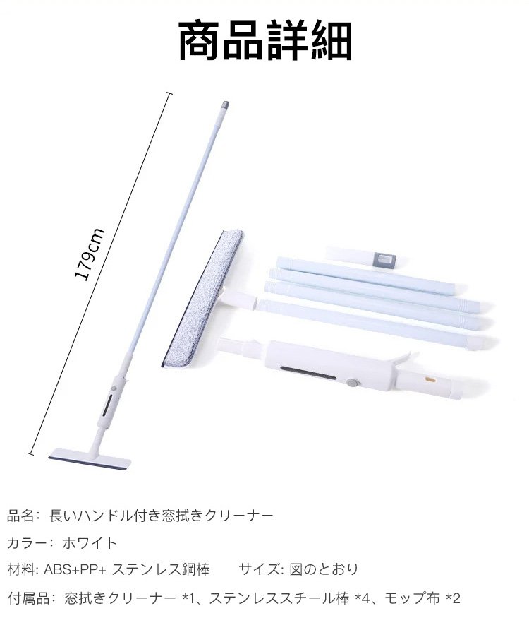 長いハンドル付き窓拭きクリーナーの全体写真