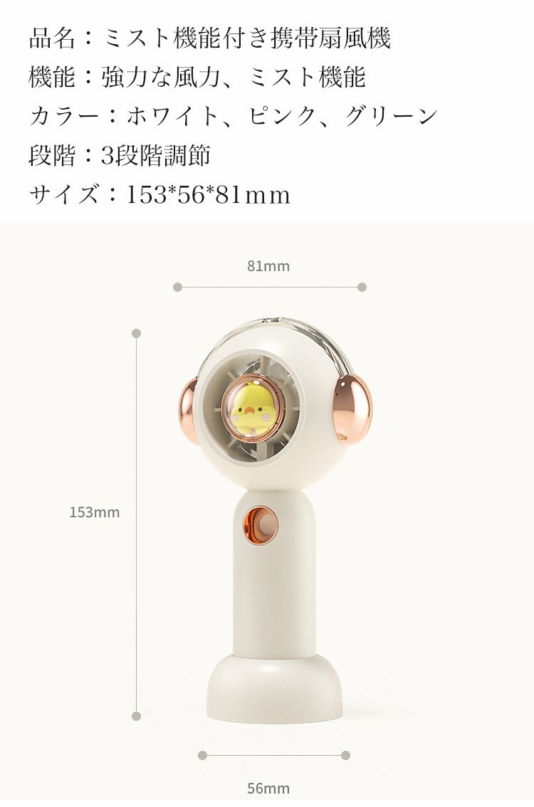 ミスト機能付き携帯扇風機